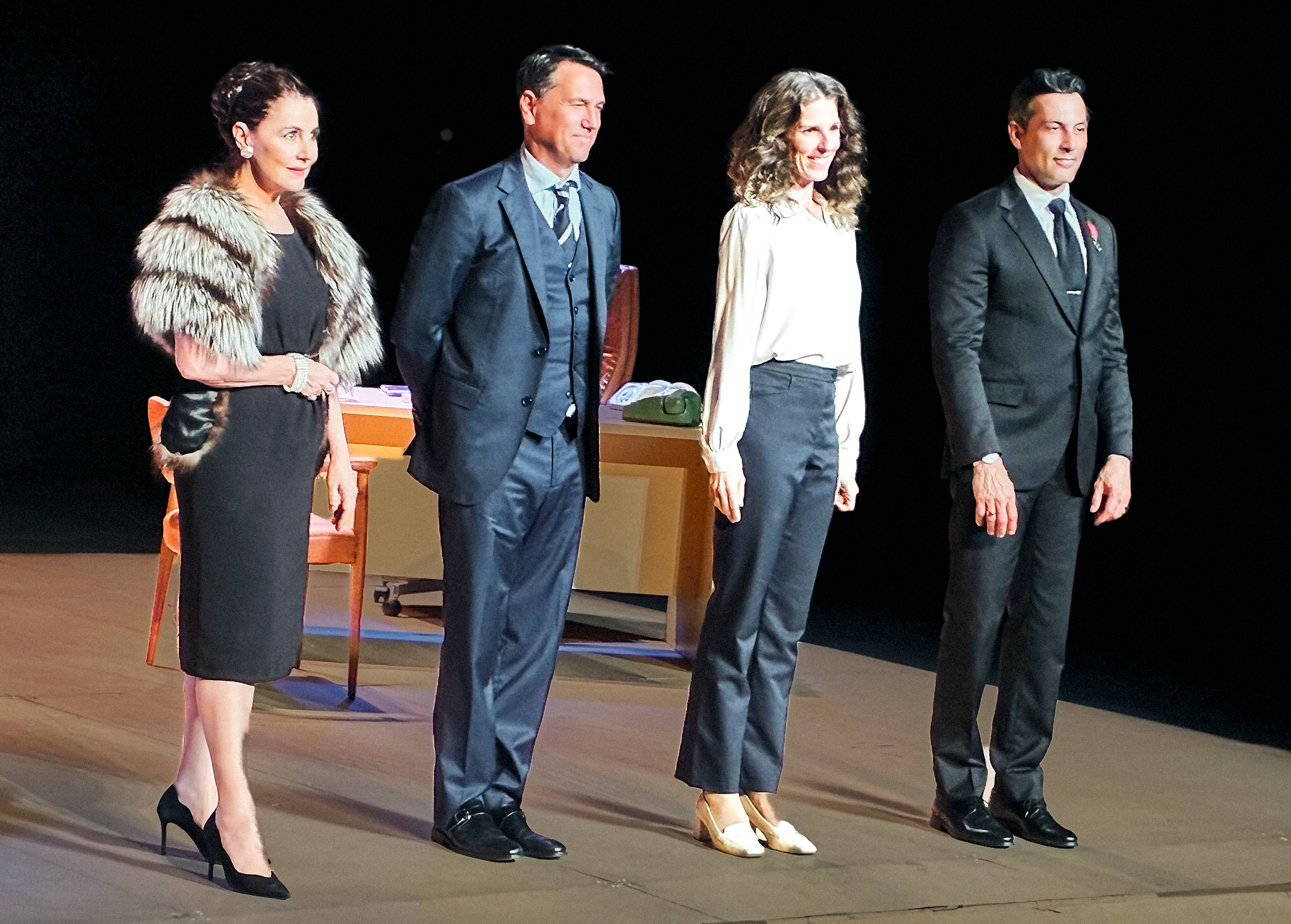 La obra, hagiográfica, y no rebajo la calificación, sobre Carmen Díez de Rivera, a la sazón jefa del Gabinete de Presidencia de Adolfo Suarez, desde enero del 76 a mayo del 77, momento crucial de la transición, en la que se centra la obra, también alude a su vida personal, en las que se dice que era hermana de con quién pretendía casarse (los novios no lo sabían, claro); lo que no se dice es que el padre de ambos fue Ramón Serrano Suñer (el hacedor del primer gobierno de Franco e insigne falangista). Detalle sin aparente importancia pero que denota blandura histórica y dramatúrgica por parte de los autores. Es un hecho relevante (habría que haber metido bisturí ahí), porque dice sobre la hipocresía de aquellos personajes tan pulcros y exquisitos.