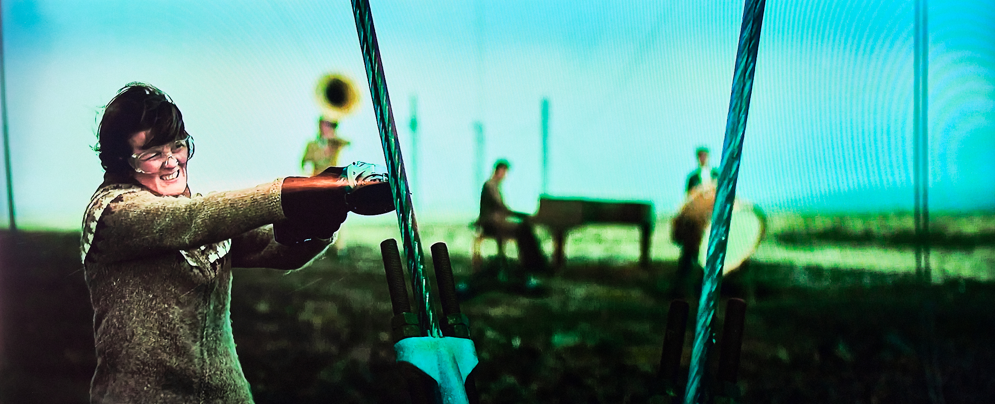 El talento de Benedikt Erlingsson (guionista y director) hace que una historia con un telón de fondo activista y reivindicativa (lucha ecologista) que la podría hacer previsible, se convierta en mágica con el juego del desdoblamiento entre dos hermanas (solución imaginativa y muy ocurrente), y, sobre todo, la presencia de tres músicos enigmáticos de instrumentos de viento y percusión, que interpretan la banda sonora de la historia en todas las acciones subversivas de Halla, Músicas sencillas y de un naturalismo pleno de resonancias que se me antojaron mitológicas (banda sonora de David Thor Jonsson). El que estos músicos aparezcan en segundo plano, pero con una gran presencia por sus músicas y porque completan el plano cinematográfico haciéndolo sorprendente, sugestivo y maravilloso. A ellos se unen en algunas escenas tres mujeres que cantan (supongo que canciones del repertorio ancestral de Islandia, ataviadas con trajes populares.