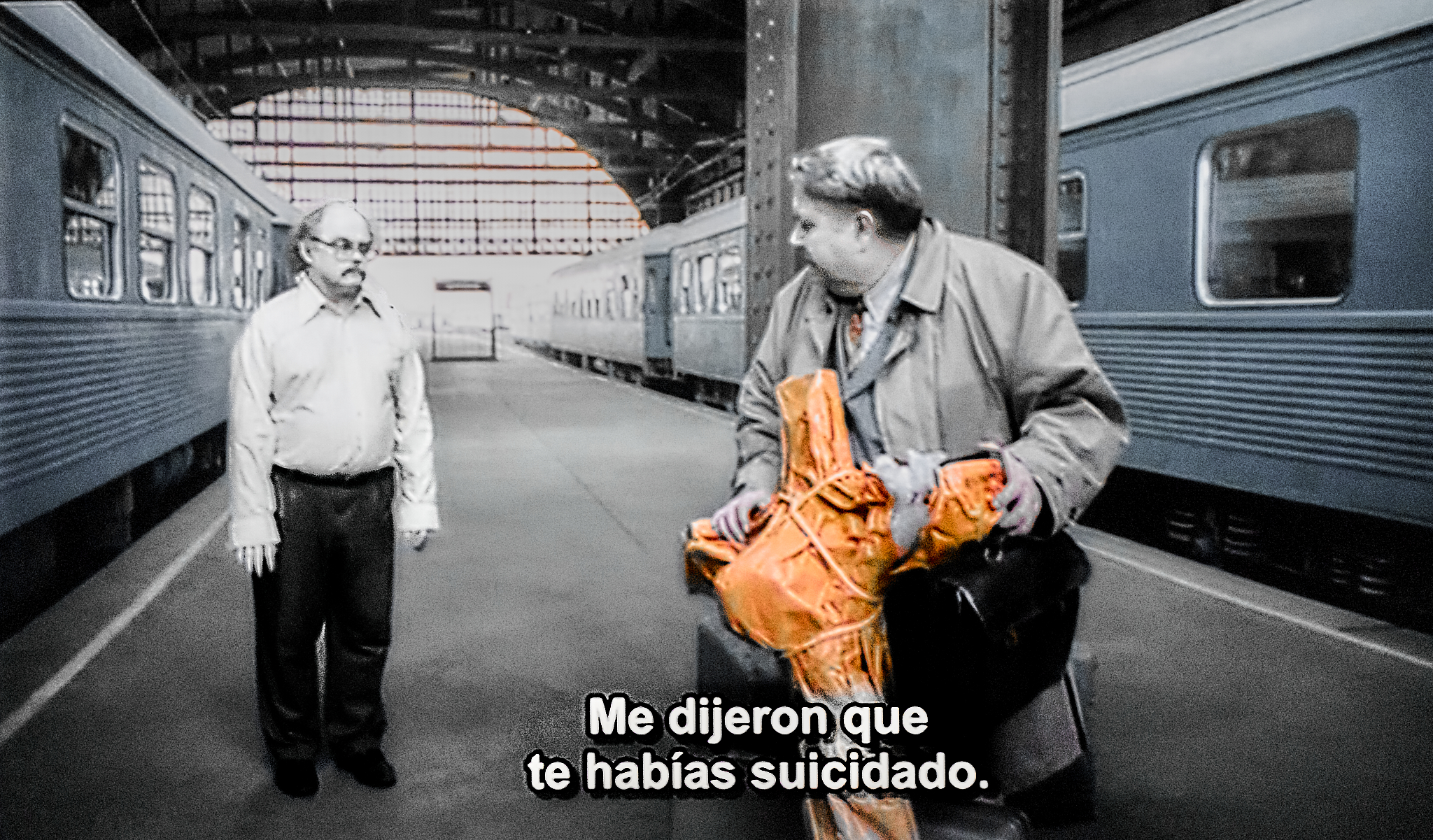 La Fotografía: Seres desentendidos de otros seres, de la película Canciones del segundo piso, de Roy Andersson (2000). Una aparente contradicción de acuerdo con lo que vengo exponiendo, dado que, por lo que sé de Andersson, es un hombre inmensamente humano y sensible, mientras que yo aspiro a ser un Cyborg de última generación. Pero, tiene sentido porque lo mío es reactivo como consecuencia de haber fracasado en ser más parecido a Andersson.