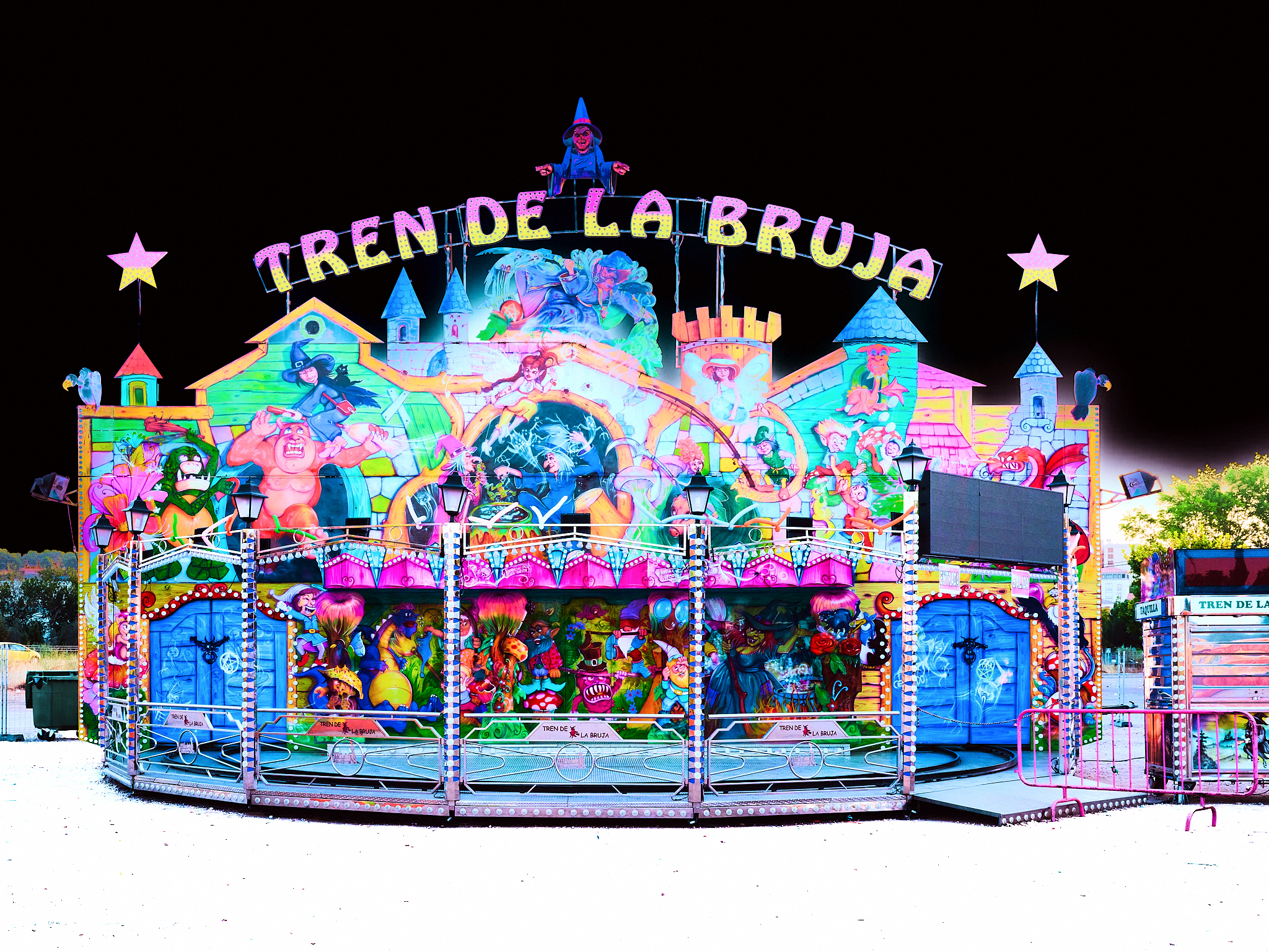 La Fotografía: El tren de la bruja, en la feria de mi ciudad. Yo me he quedado dentro y me han dejado solo. Estoy aterrado.