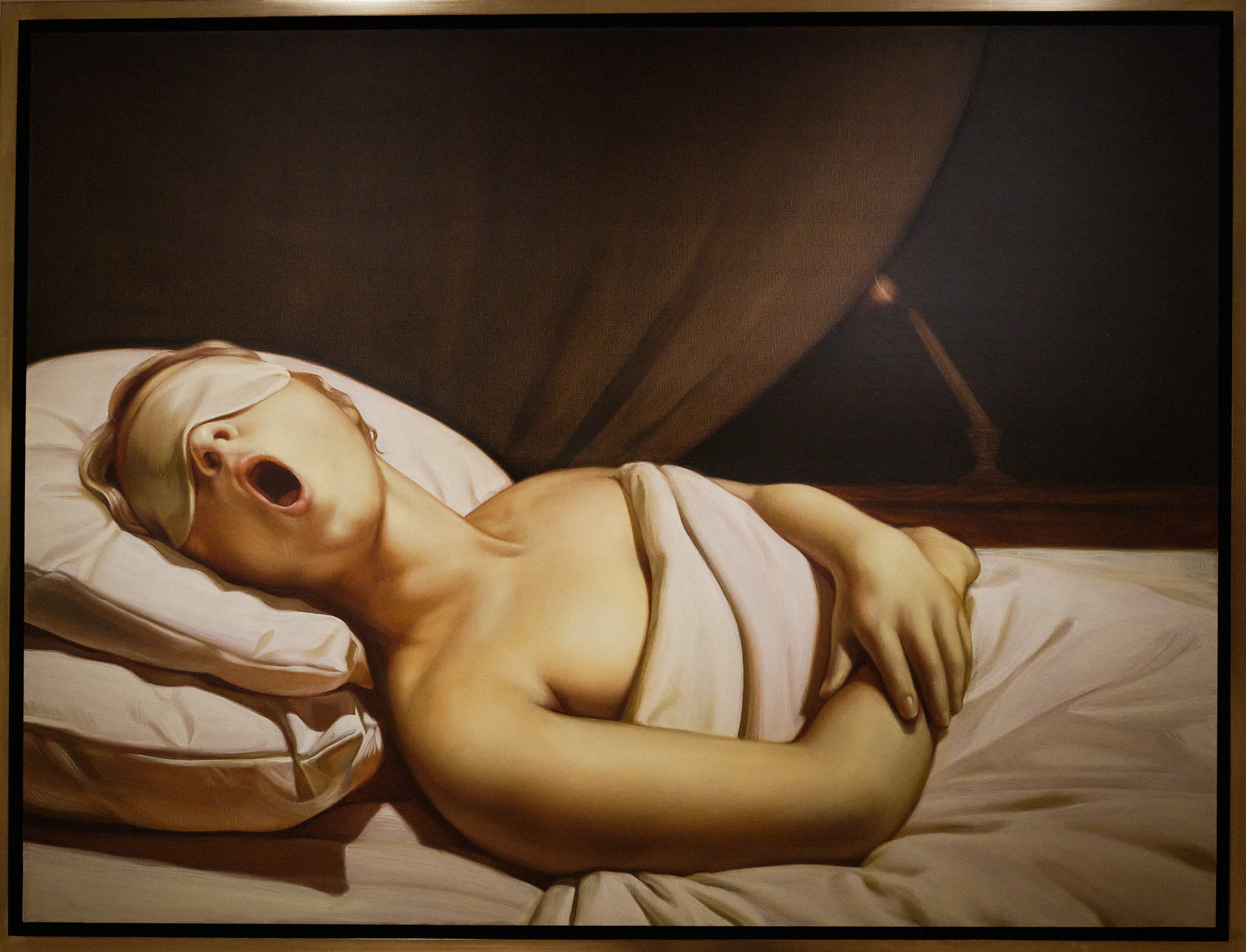 La Fotografía: Sumbler, de Anna Weyant (2020), de la exposición en el Museo Thyssen Bornemisza, que vi hace menos de quince días (un acontecimiento). En tiempos de penuria, míos y solo míos (de los demás, si es que existen, nada sé), al menos me queda el arte, que me salva algunos días. No sé qué pensaba o sentía la artista cuando creó esta obra, lo mismo nada que ver con lo que a mí me sugiere ese ser tumbado, que no ve y que parece sufrir una pavorosa pesadilla.