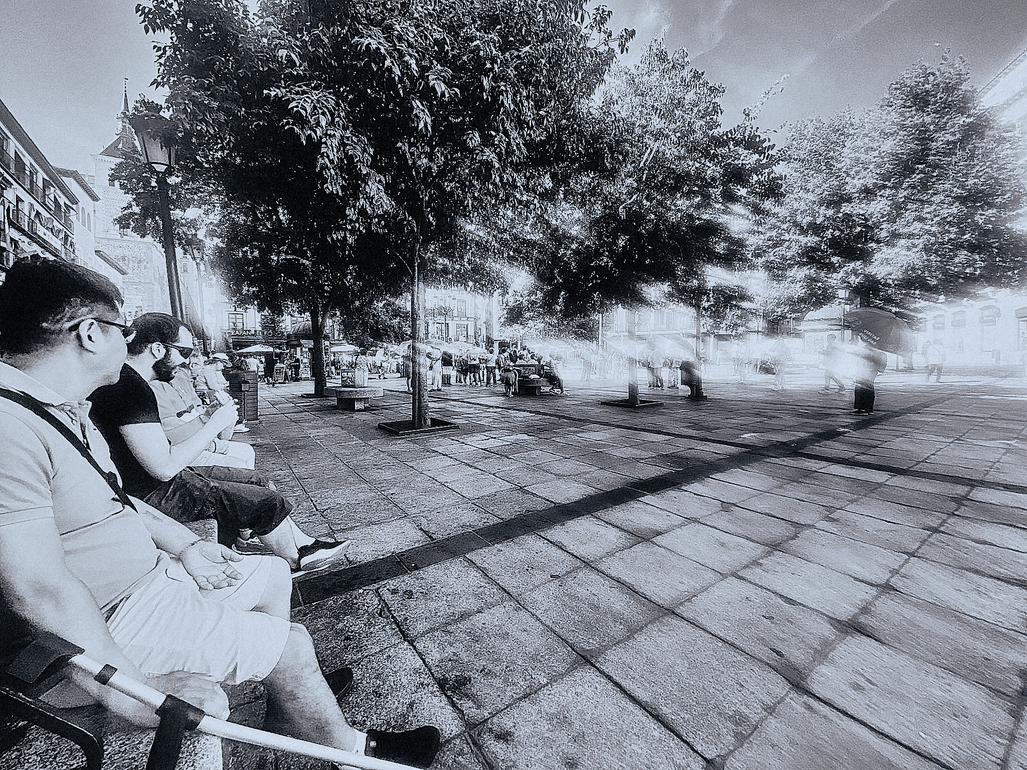 La Fotografía: Me senté en un pretil de Zocodover a ver qué hacía la gente y a descansar, sin estar cansado. A la gente ni la he mirado, enseguida me he dado cuenta de que no me interesaba en absoluto lo que hicieran. Me largué unos minutos después.