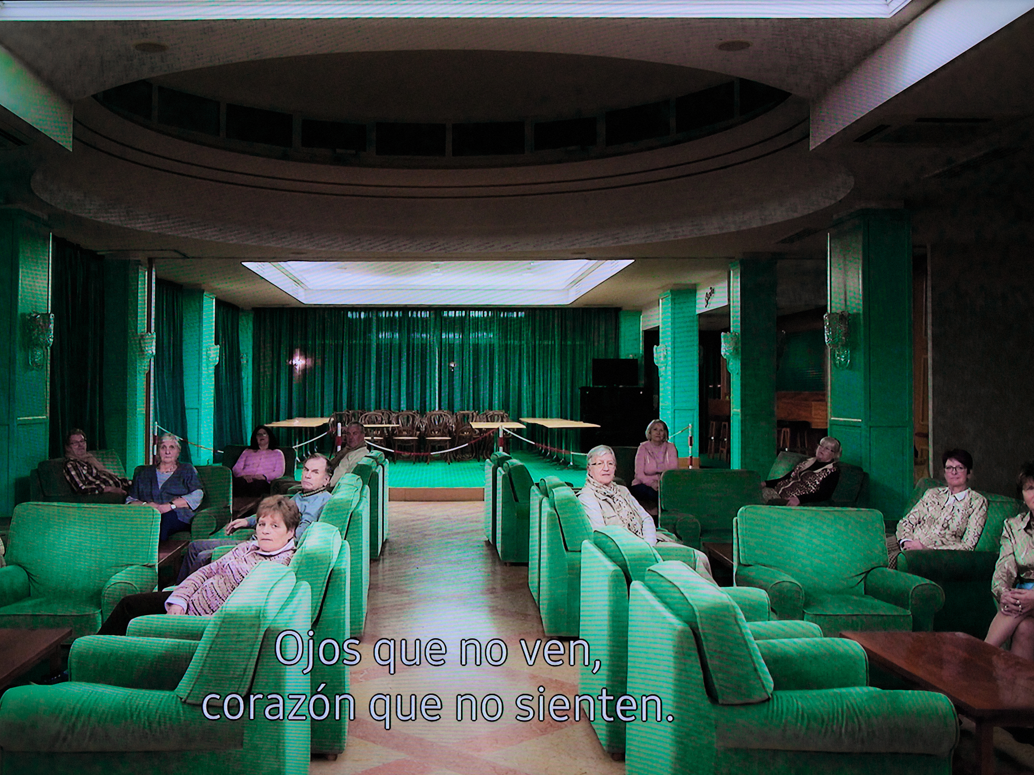 La Fotografía: Viejos en conserva en un hotel de vacaciones cualquiera, silenciosos y profundamente aburridos (imagen de la película: Remini, de Ulrich Seidl). Ya no hay deseos, ya no hay vida real, solo vegetativa, una forma más de languidecer.