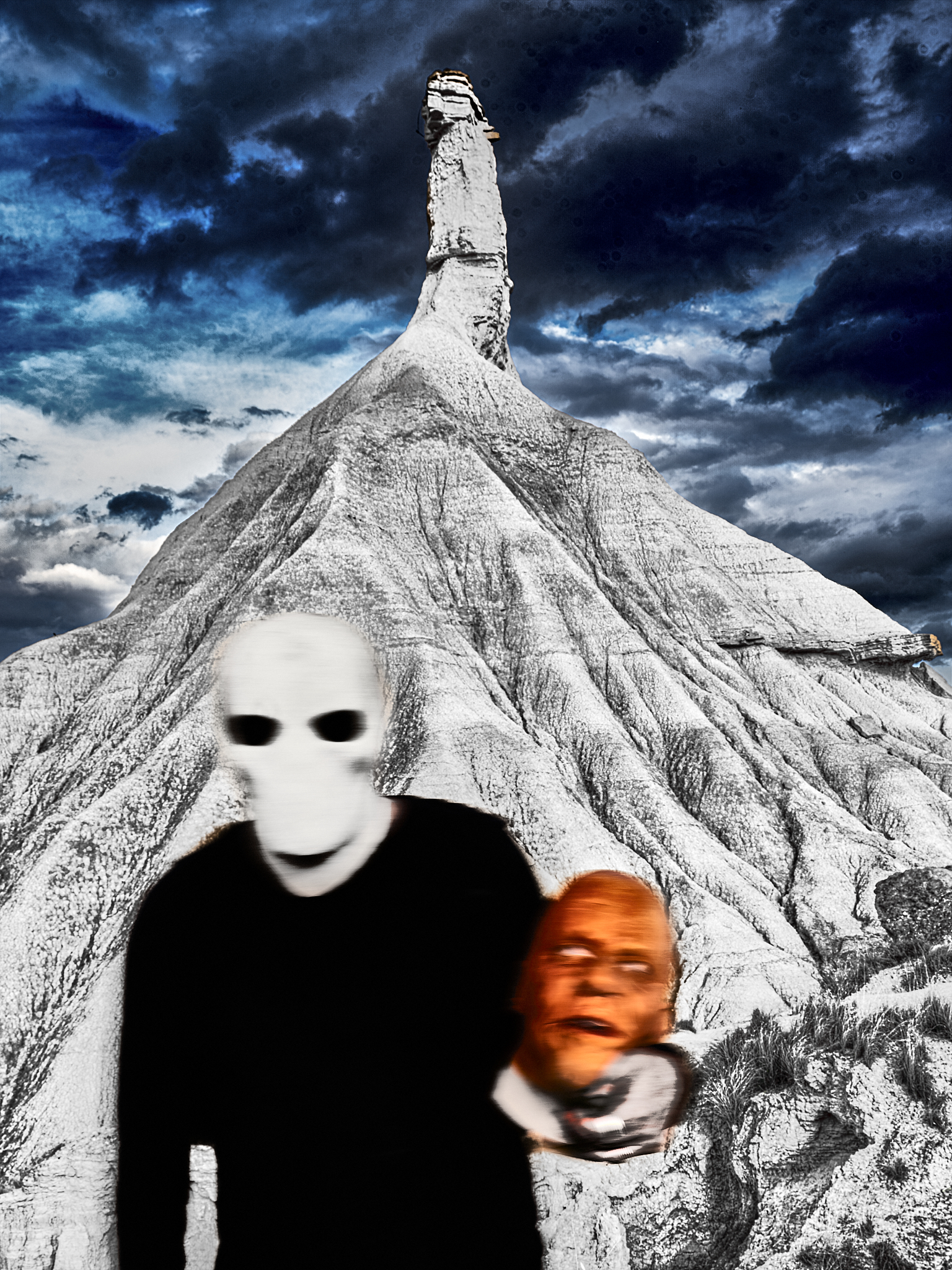 La Fotografía: Salí de Olite sin que me gustara especialmente, hacia las Bárdenas Reales. Allí, realicé una performance con espectadores que se paraban a mirar, en la que escenifiqué danzas rituales con máscaras y todo y otras representaciones que pretendían simbolizar lo jodido y solo que me sentía después de llevar varios días por carreteras solitarias (las mejores posibles), sin hablar con nadie y tampoco reírme en varios días; de Castillo en Castillo; de Catedral en Catedral; de Monasterio en Monasterio… Ah, y de tristes y pobres habitaciones nocturnas a otras lo mismo de tristes y cutres.