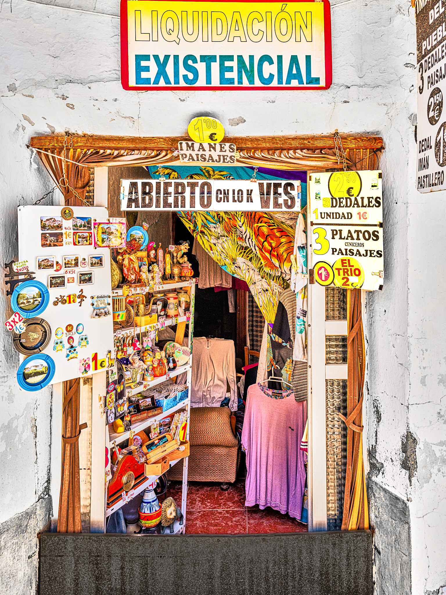 La Fotografía: Llegué exhausto a Alcalá de Júcar, que es el sitio más lejano del mundo. Me parecía que a medida que avanzaba el pueblo se alejaba de mí, huía de mi proximidad y presencia en sus calles (me gusta imaginar que soy el viajero maldito). Hasta dudé de que existiera realmente. Pero sí, existía. Aparqué el coche en la orilla del Júcar, o eso supuse porque allí, en la base de la montaña donde habían construido la población con un castillo en lo más alto, había un río que solo podía llamarse Júcar, porque si no todo sería un error. Comencé a subir hacía el castillo, que estaría cerrado porque eran las dos de la tarde, y los guardianes de los castillos paran para comer y dormir la siesta. Subí en zigzag para sufrir menos, por calles intrincadas y blancas. En el ascenso y descenso me encontré con numerosas entradas a cuervas, de pago claro. Una de ellas se llamaba del Diablo, como el diccionario de Bierce. No entré en ninguna. Sin embargo, si me tropecé con una, hacia la cima del monte, en la que estaban en Liquidación Existencial, como yo. Tampoco entré para no ser abducido y desparecer para siempre (como Bierce), en la procelosa liquidación existencial en la que estaban inmersos. Me dio miedo. Me limité a fotografiar y seguir mi ascensión al castillo cerrado, para evitar que pudiera entrar.