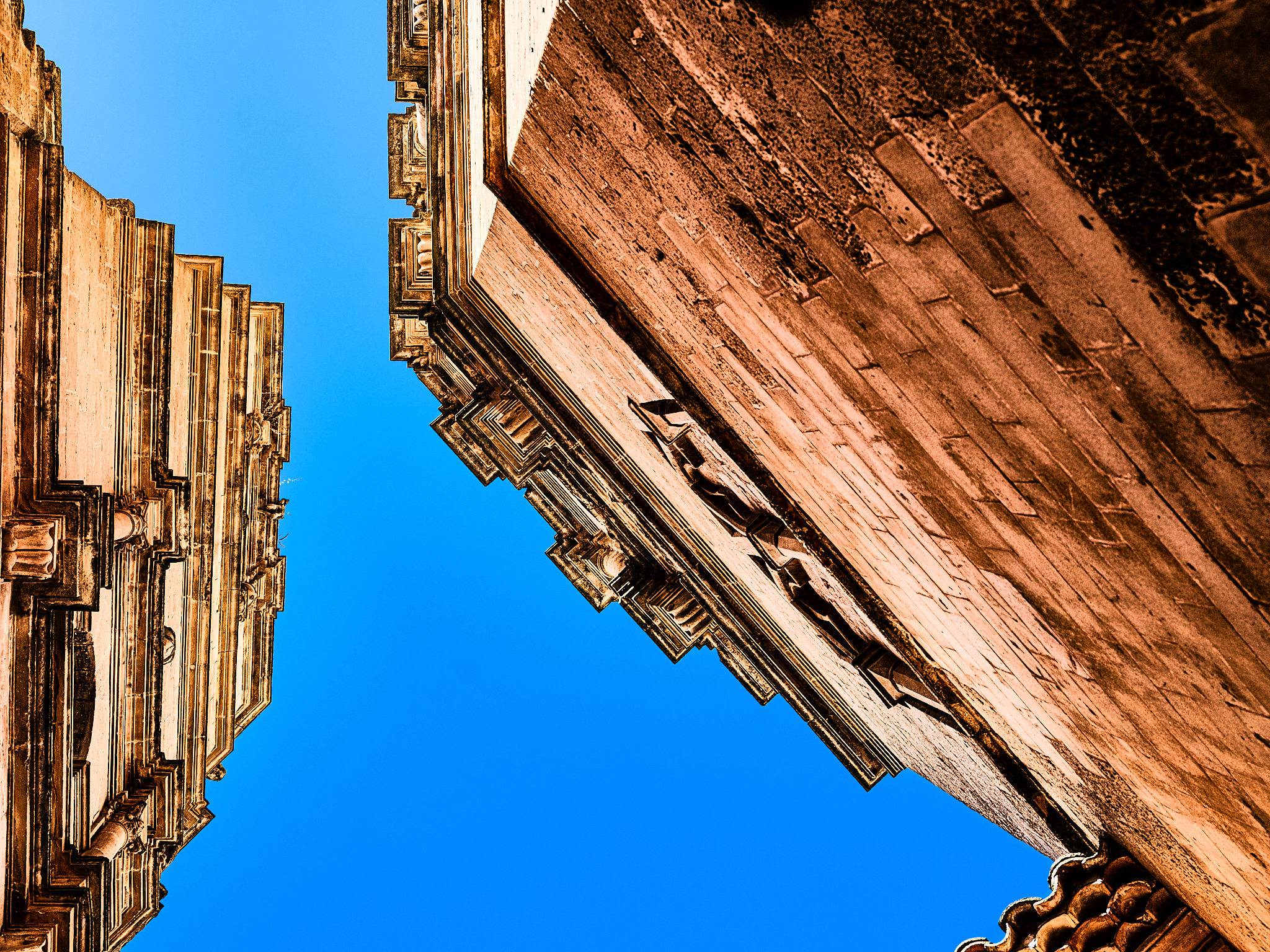 La Fotografía: La iglesia católica resulta a veces entretenida, con sus arquitecturas singulares y espectaculares. La disposición de las dos torres de la Plaza Mayor de Alcaraz (renacentistas), inexplicablemente juntas, probablemente dieron sentido estético a todo mi día. Con pocas dudas pienso que la religión católica y su máxima expresión artística, filosófica y existencial, el cristianismo por su vertiente trágica, es la mejor y más fructífera religión del planeta. Probablemente, las religiones mitológicas fueron las de mayor contenido mistérico, poético y literario, pero la católica se desarrolló con otros valores más propicios para su expansión y perdurabilidad porque supieron conjugar lo imposible con lo tangible: el arte, el poder y el dinero. Esa combinación ha resultado imbatible durante tanto tiempo porque generó cultura e intereses humanos a lo largo de milenios (y mucho entretenimiento). Estoy infinitamente agradecido al catolicismo porque me permite hacer Microviajes con causa y así ir tirando sin tener que tumbarme a morir sin que nadie me despida.