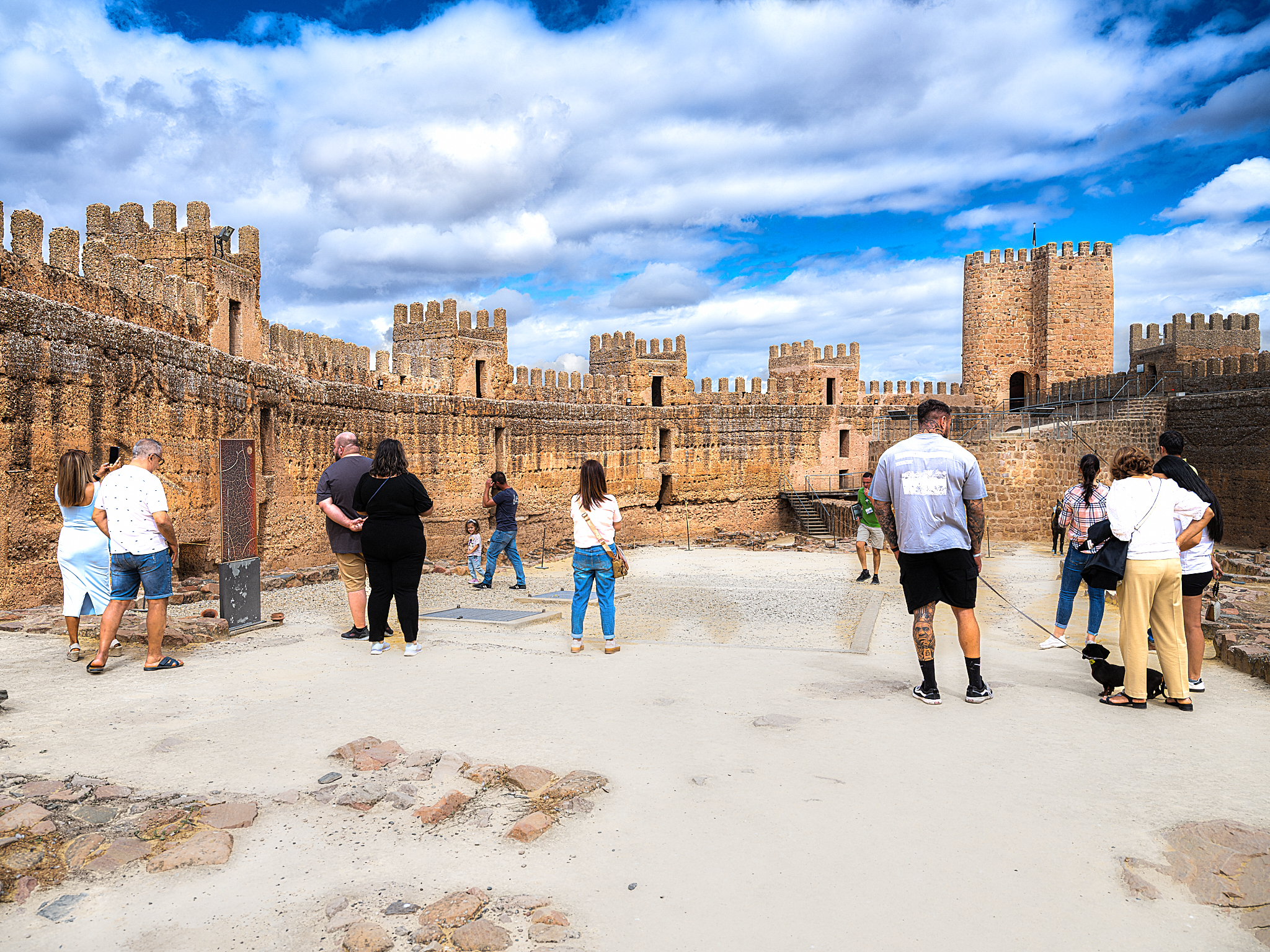 La Fotografía: Me sentí bien en la visita del castillo, recreándome con la belleza de la fortaleza y la matizada y fotográfica luz que había en esos momentos. La visita guiada la integrábamos un grupo de doce personas adultas, una niña y un perro salchicha ladrador, que fuimos llegando entre la una y una y media. La actuación del guía, muy simpático, resultó pedagógica y amena.