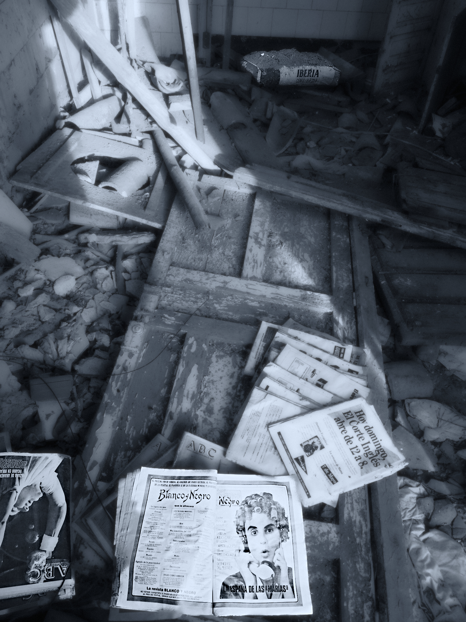 La Fotografía: Prensa antigua, salvada de un incendio por pura suerte. Probablemente esos restos ruinosos no lo eran en la época en la que yo tampoco lo era. Ahora esa casa y esos restos están en este lamentable estado de destrucción irreversible. Yo también. Sí, esta foto es una elemental metáfora.