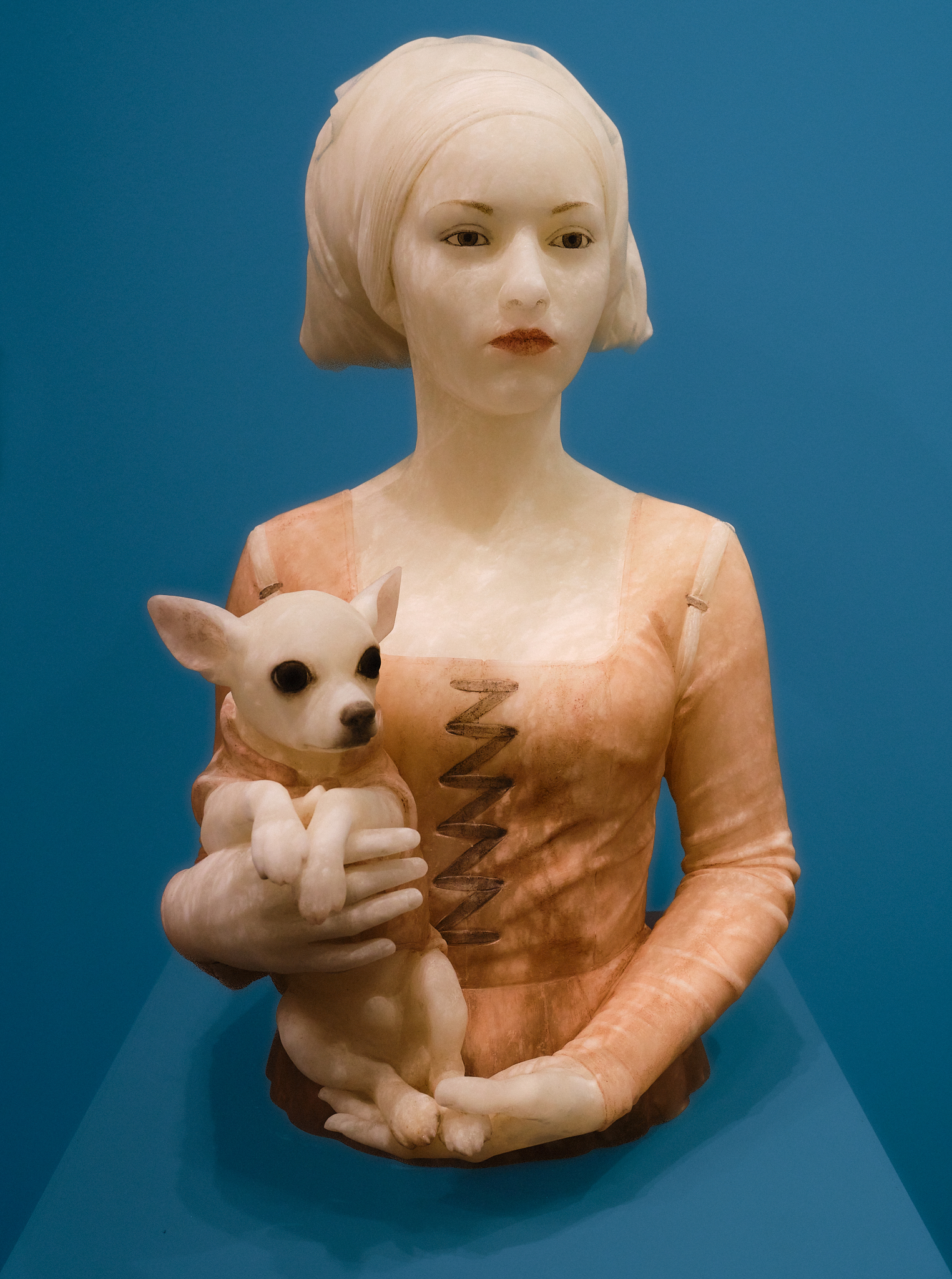 La Fotografía: No sabía que foto traer hoy al diario, me ha costado encontrarla (quizá habría sido pertinente alguna de los cobertizos); pero me he decidido por una escultura de mujer con perrito, de la última muestra de Estampa, porque al fin y al cabo hablamos mucho de perritos.