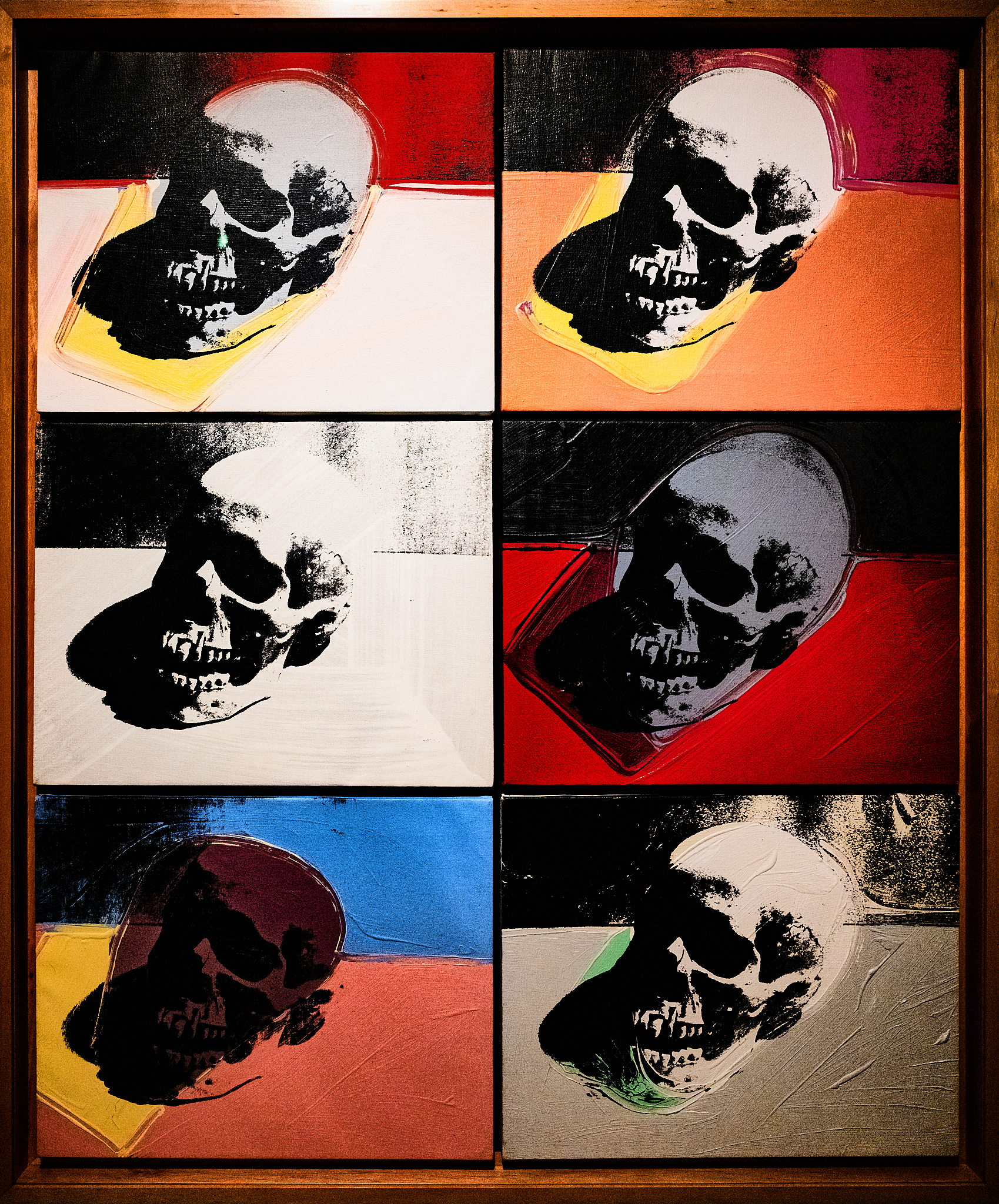 La Fotografía: De Jackson Pollock no fotografié ninguna obra expuesta; sí de Andy Warhol, varias, esta, por ejemplo, perteneciente a la serie: «Vanitas: Calaveras y autorretratos 1976-1986». Fue una de las que más me interesó. Tampoco faltaba la plasmación de varios accidentes de coche que aluden directamente a la muerte trágica y repentina de Pollock. Las series de accidentes me parecieron de una aridez indigerible.