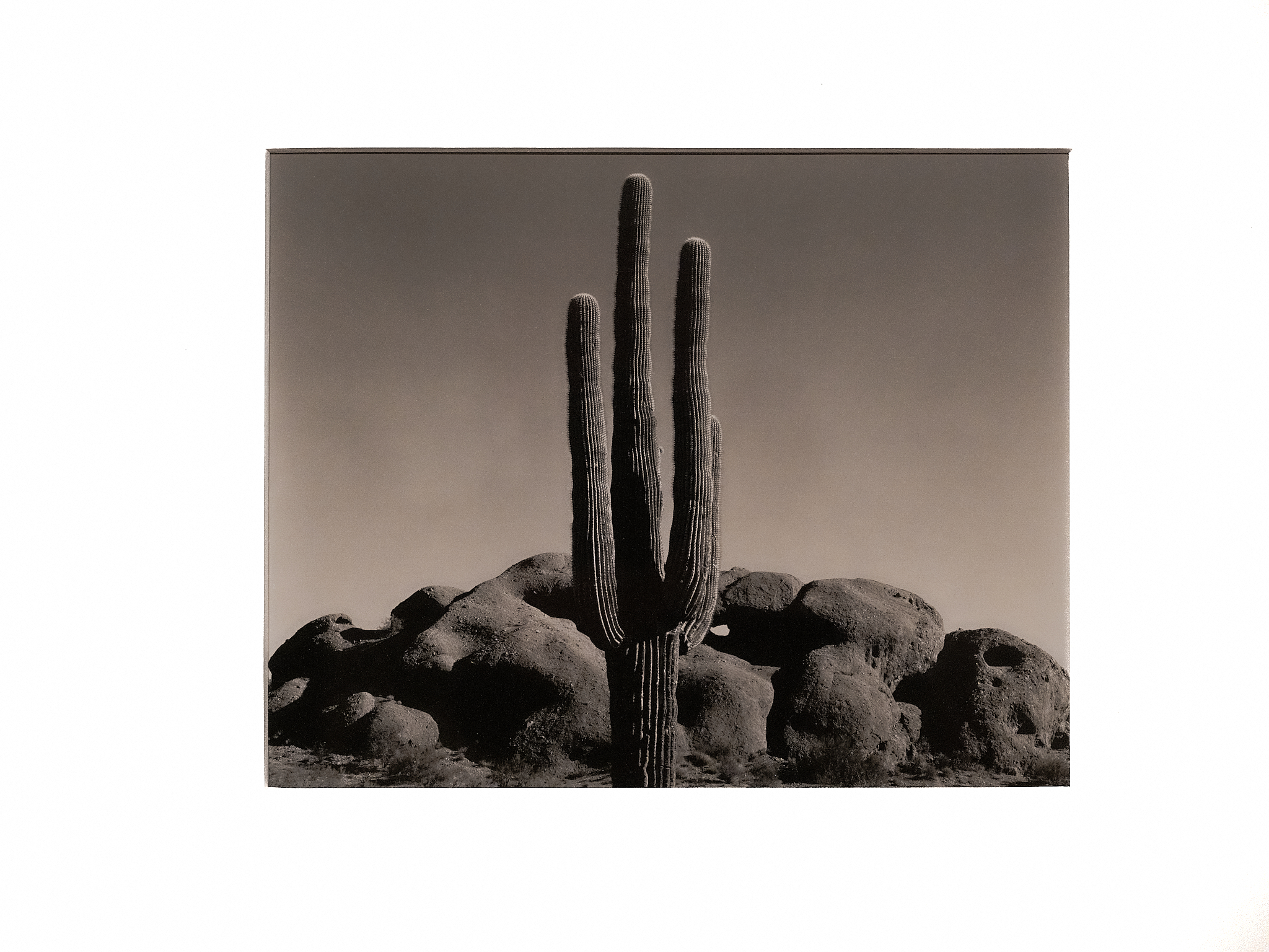 La Fotografía: Saguaro (1938); yo también fotografié Saguaros (2008), en las inmediaciones de Tucson (Arizona), setenta años después. Pero ni de lejos conseguí una imagen como la de hoy, y me habría gustado. A la hora de hacer mis fotos (medio formato, Mamiya RB67), en mi subconsciente seguramente estuvieron presentes sus imágenes; pero en absoluto racionalmente, nunca he sido consciente de fotografiar “al estilo de”; siempre me he dejado llevar por mi propio instinto en cuanto a temática y concepto. Hoy he vuelto sobre un libro de gran formato de Weston, que se había llevado Naty, pero me lo ha devuelto en préstamo, y he descubierto con asombro, que en lo que se refiere a la fotografía de naturaleza, paisajes, primeros planos de motivos vegetales y, sobre todo, lugares abandonados; muchas de mis fotos, sin saberlo a priori, se parecen a las suyas: la misma lectura e interpretación fotográfica; salvo naturalezas muertas y desnudos (que apenas practiqué). Compartí con Weston, setenta años más tarde, inquietudes estéticas, salvando las distancias de talento y calidad de obra, claro. Aunque sintiera la trascendencia de la belleza de esas maravillosas plantas en el momento de la toma, las mejores imágenes posibles ya estaban hechas por el maestro.