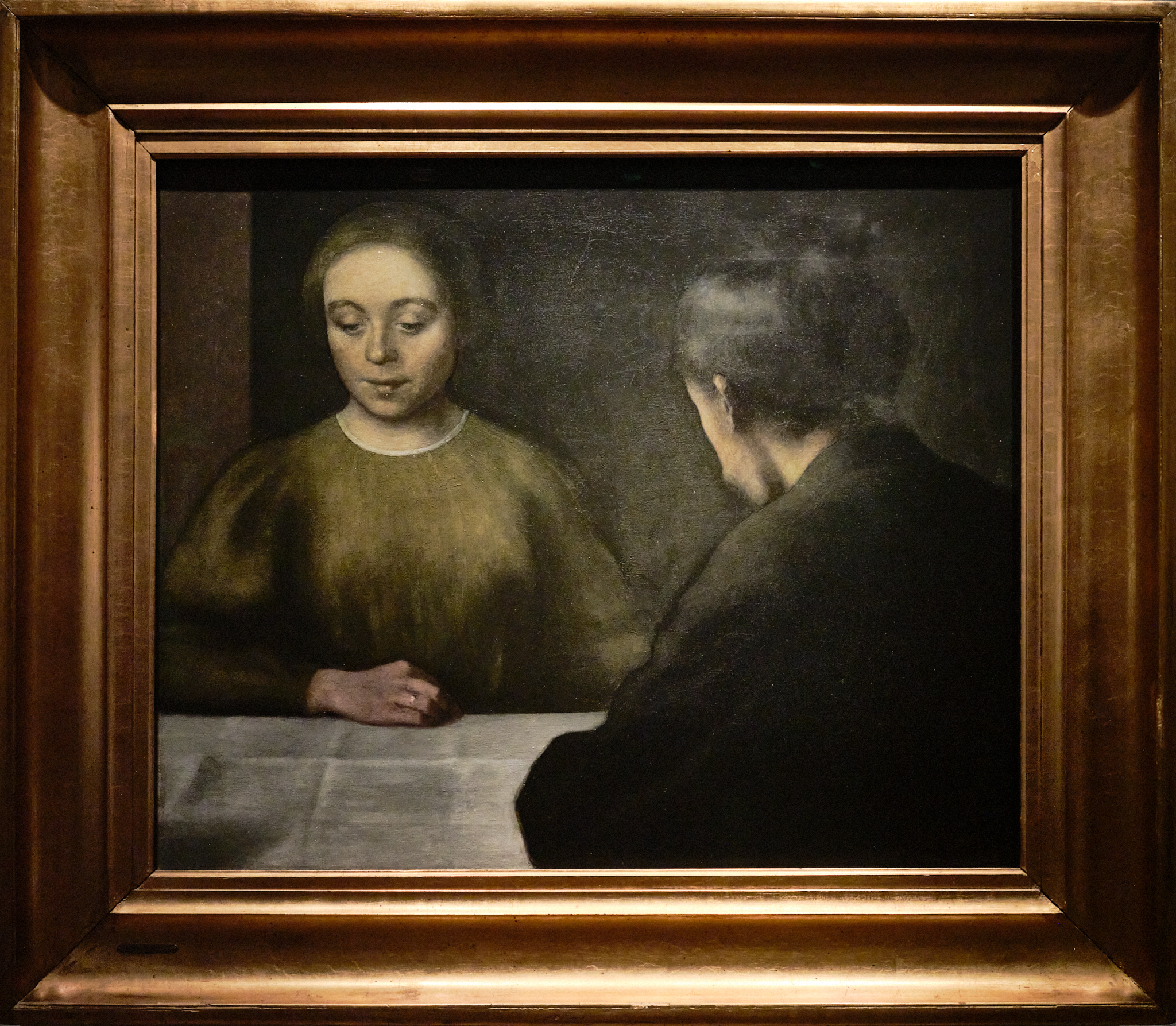 La Fotografía: Una posible recreación de mi encuentro con Inés, pero sin el peso del compromiso amoroso. En 1898, Hammershoi se encuentra en Londres, donde aspira a conocer a James Mcneill Whistler y a exponer este lienzo, del que se conservan dos dibujos preparatorios: “Una especie de retrato doble de Ida y yo, aunque yo doy la espalda casi por completo al espectador. Y, de hecho, la intención no es que sean retratos en el sentido estricto”. Vilhelm Hammershoi. El resultado es una escena íntima con dos figuras cercanas pero desconectadas, en un contexto ambiguo y enigmático.